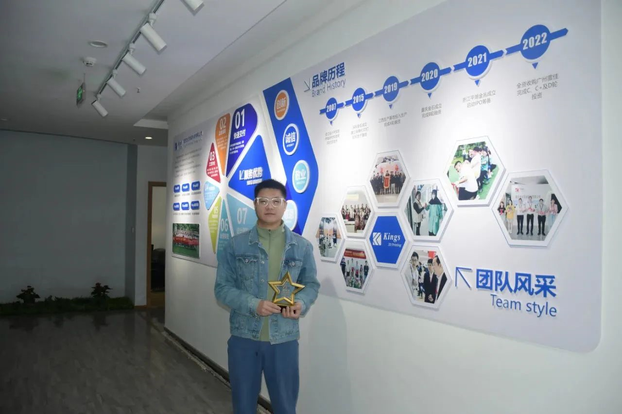 时间回到2017年,彼时的郑家奎还是总部深圳金石三维的一名设备调试员,日常工作就是对3D打印设备进行调试。那时的他就对3D打印产生了浓厚的兴趣,他热爱这份工作,也看好这个行业。他把学习当成提升自己最好的武器,所以他不断地利用业余时间学习3D打印编程,上网搜索学习关于3D打印的一切知识,逐渐成长为一名优秀的编程工程师。