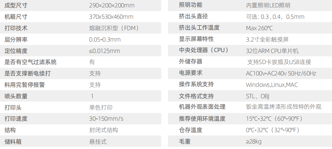 层分辨率: 0.05-0.3mm