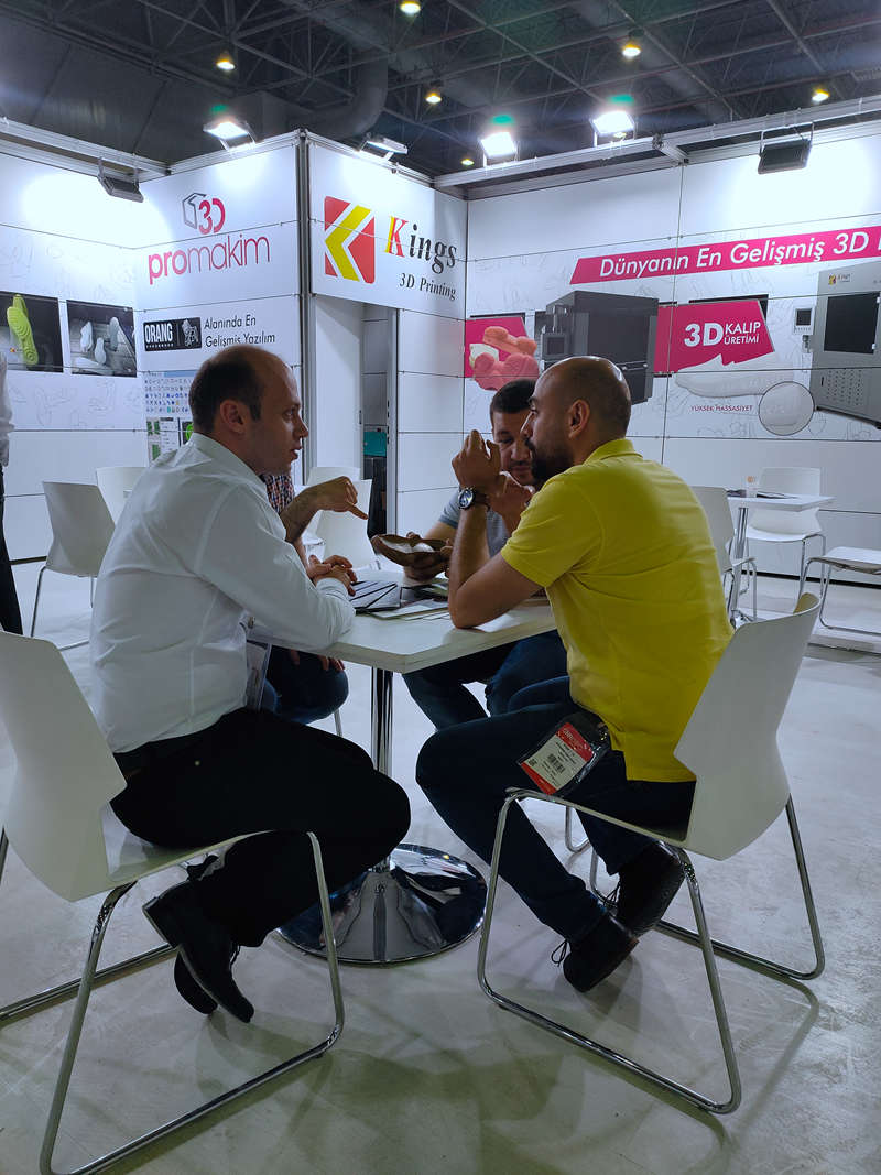 在土耳其第61届AYSAF展会上,金石三维的Kings工业级3D打印机让现场观众耳目一新,大多数人惊叹“原来鞋子还是可以这样做”!在展会上,金石与当地客商喜签3笔订单,成为AYSAF的新技术代表。